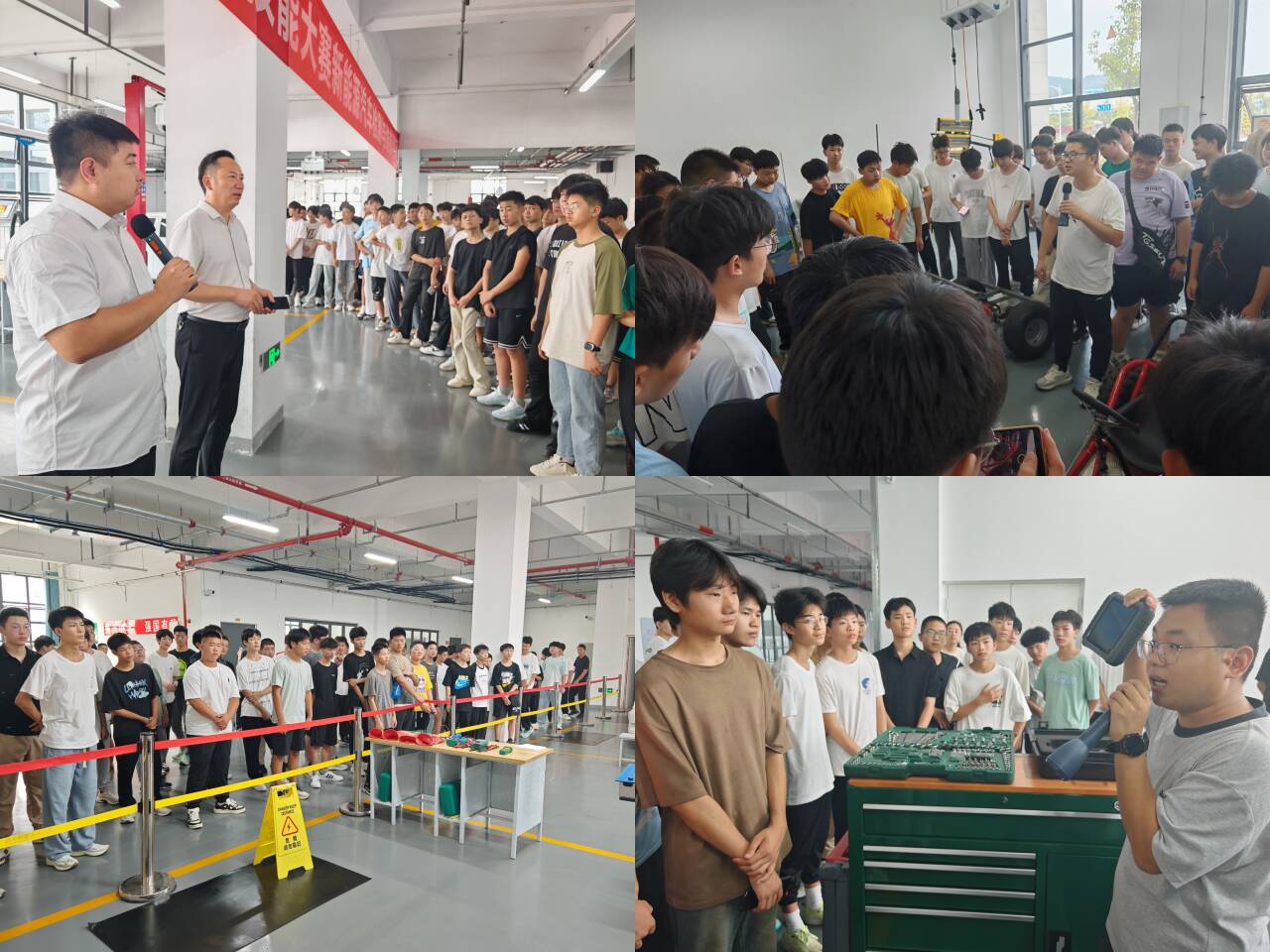 汽车部的老师们热情地为同学们介绍着实训室的各种设施和功能。在发动机实训区,老师详细讲解了不同类型发动机的工作原理和构造,同学们围拢过来,仔细观察着发动机的每一个细节,不时提出各种问题。老师耐心地解答着同学们的疑惑,让大家对发动机的奥秘有了更深刻的认识。