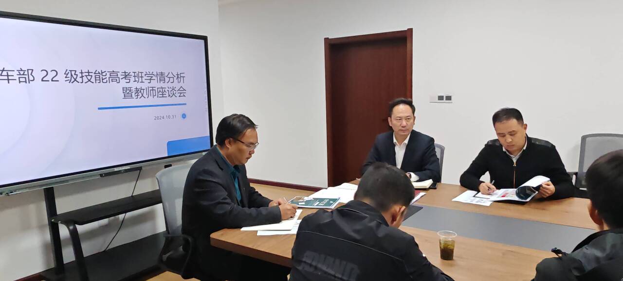 2024 年 10 月 31 日下午4点,汽车部22级技能高考学情分析暨教师座谈会在8号楼404会议室隆重举行。会议由汽车部主任李雷,副主任陈志成主持。此次座谈会旨在深入了解学生的学习情况,为明年的技能高考制定更精准的教学策略,助力学子们实现梦想。