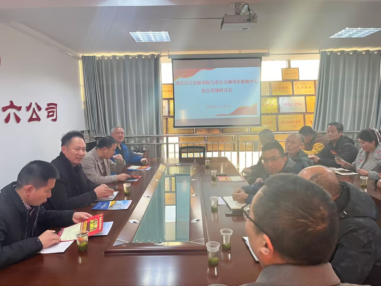 2024年11月29日下午,汽车部主任李雷,书记陈志成,副主任赵延虎、张辉、廖兴琛以及汽车部青年教师一行来到十堰市公交集团有限公司共同参加校企合作共建研讨会。