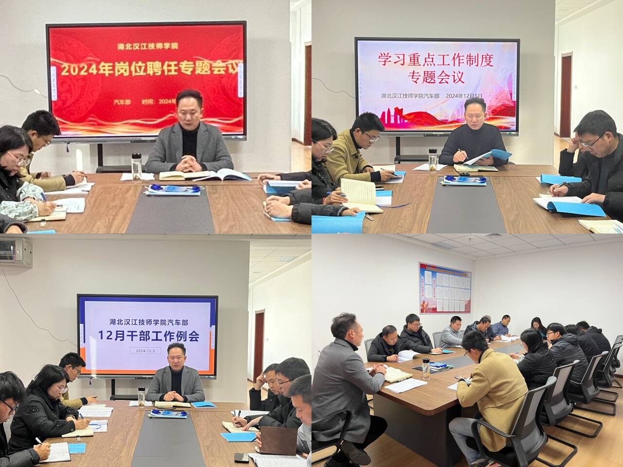 2024年12月5日上午,汽车部召开解读岗位聘任,学习重点制度的专题会议。会议由李雷主任主持,汽车部书记陈志成,副主任黄长江,赵延虎,张辉,廖兴琛,汽车部工作人员程名,段霄寒,谷师锐,李伟,教研组长汪志金,诸高年,魏永豪,陈均参会。