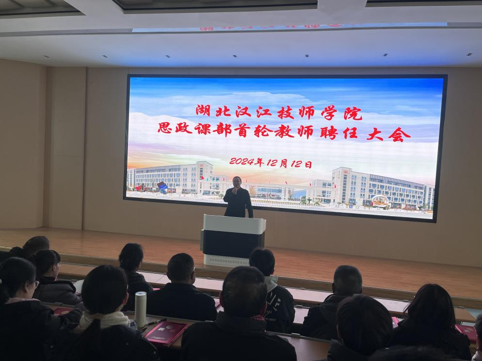 12月12日下午,思政课部在7号楼阶梯教室隆重举行了新一轮教师聘任大会。此次大会是在学校加强能力作风建设,积极推动学校高质量发展背景下召开的大会,旨在进一步加强思政课部教师队伍建设,推动思政课教育教学工作的持续健康发展。校党委委员、副校长全斌、教务处主任朱大鹏及思政课部全体专兼职教师齐聚一堂,共同见证这一重要时刻。