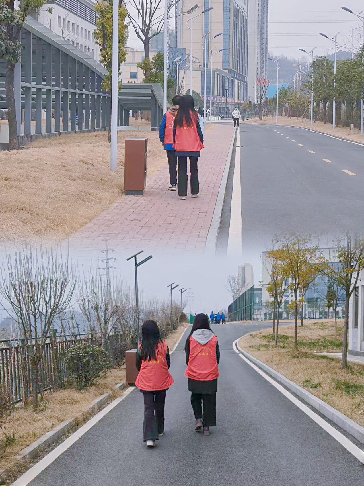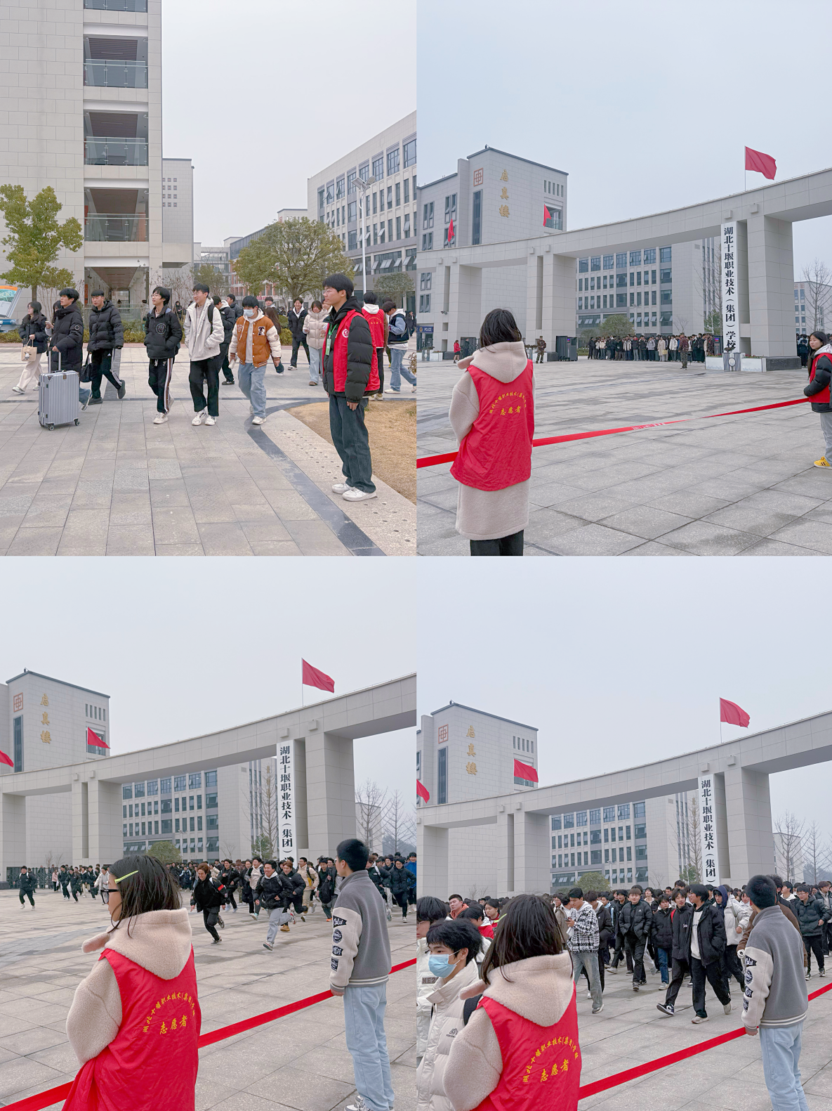 文明出行,共筑平安校园。双休日期间,校门口人流量、车流量明显增加。为确保师生出行安全,志愿者们在校门口主要路口开展文明交通劝导服务。他们身着红色马甲,佩戴工作牌,引导行人走斑马线,提醒过往车辆减速慢行,注意避让行人。志愿者们认真负责的态度和温暖友善的笑容,成为校门口一道亮丽的风景线,为营造安全有序的校园交通环境贡献了青春力量。