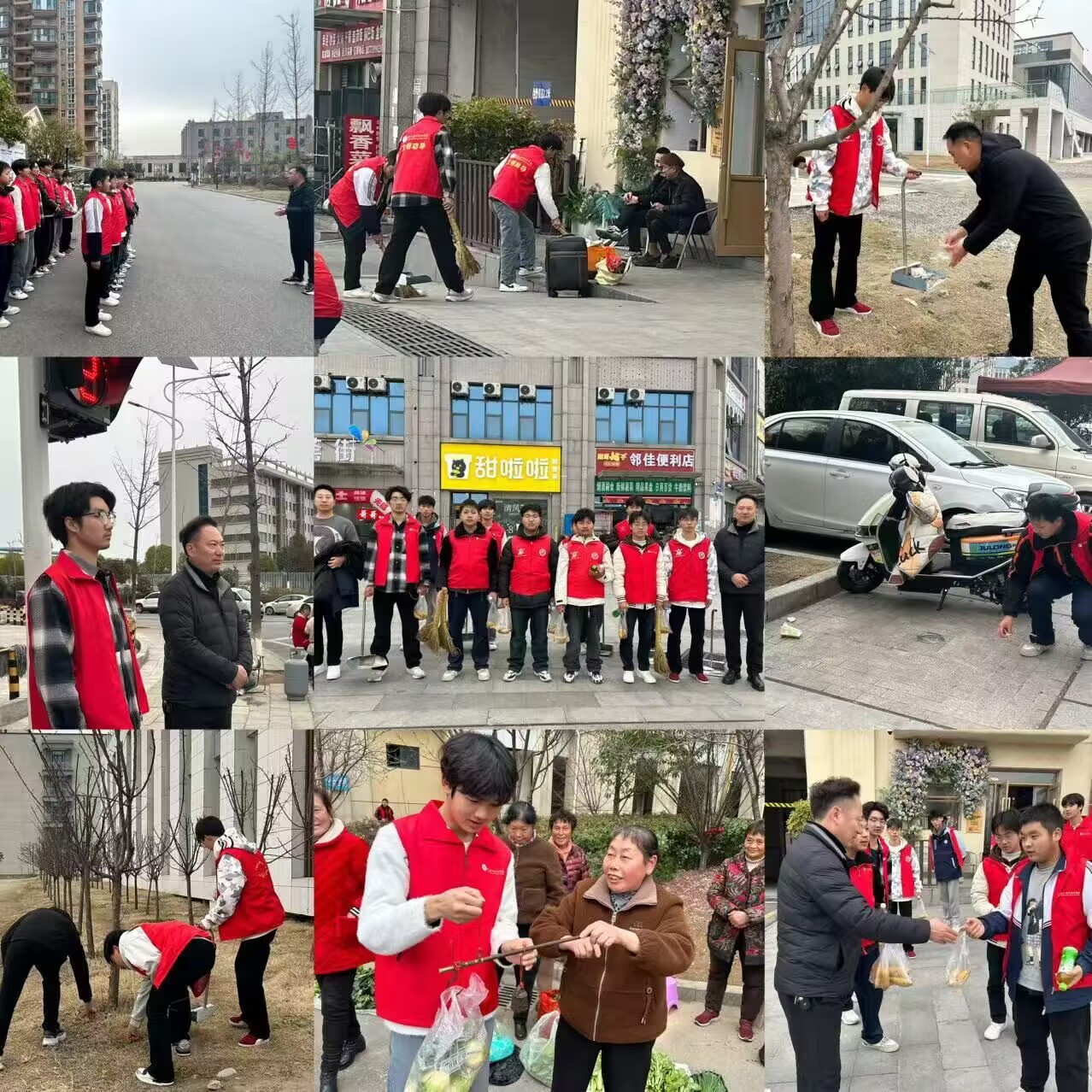 一路志愿者来到茂达花园小区及周边,他们不怕脏、不怕累,认真清理小区的每一个角落。从道路两旁的垃圾到花坛中的杂物,都被一一清扫干净,为居民们营造了整洁舒适的居住环境,得到了居民的好评。另一路志愿者坚守在斑马线旁,化身为文明交通的守护者。他们耐心劝导行人遵守交通规则,用自己的行动传递着文明出行的理念,成为一道亮丽的风景线。最后一路志愿者则专注于校园死角的卫生清理。那些平日里容易被忽视的角落,在志愿者们的努力下重焕新貌。他们用勤劳的双手,为师生们打造了更加干净、美丽的校园。