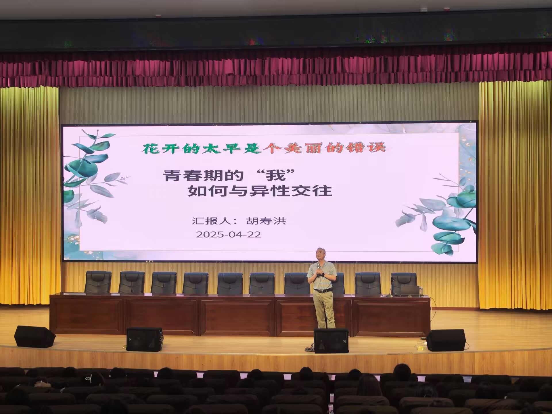 胡主任围绕“青春期的特点及人际交往的意义”“异性交往的常见问题与风险”“如何把握异性交往的原则与界限”“青春期的人际交往技巧与注意事项”等六个方面展开讲授。他以亲切幽默的语言、贴近现实的案例,引导学生思考青春期人际关系中可能遇到的困惑与挑战,强调健康交往、相互尊重、自我保护的重要性,帮助同学们建立清晰的人际交往边界,学会真诚沟通与自我管理,收获了同学们热烈的掌声与积极回应。