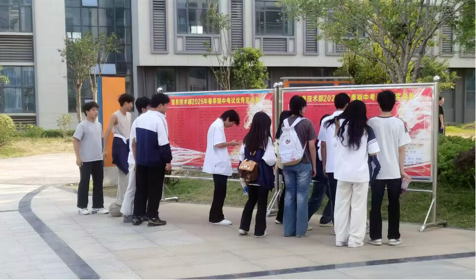 2025年5月底,信息技术部顺利组织了2024-2025学年第二学期期中考试,经过严谨的阅卷与成绩统计,各班级涌现出一批勤奋刻苦、成绩优异的学子。为表彰先进,树立学习榜样,信息技术部于近日公布了优秀学生名单,并通过“优秀学生表彰”展板,展示他们的学习成果与风采。