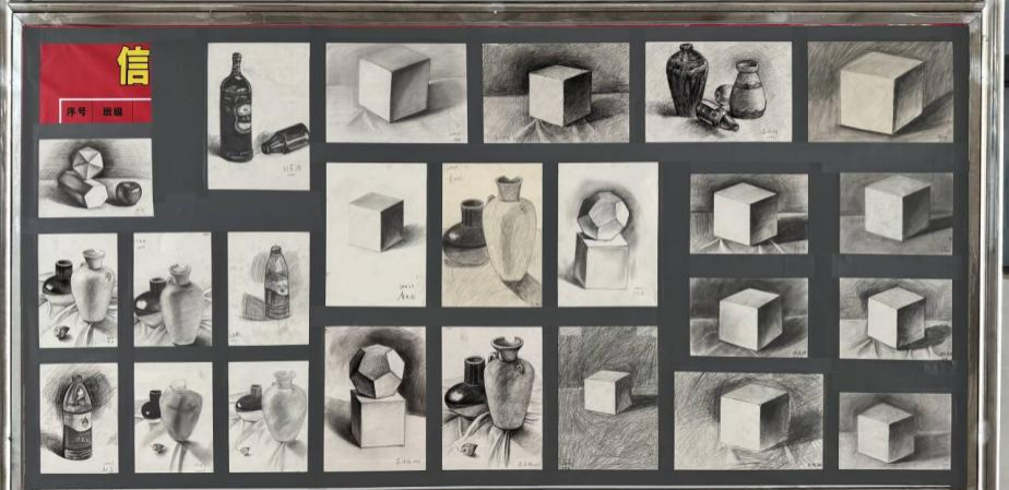 展览汇集了信息技术部学子们在过去一学年中的优秀美术作品。这些作品不仅体现了扎实的美术功底,更深度融合了同学们的创新意识。这里可以欣赏到几何素描、静物素描、平面色彩构成、产品设计等多种形式作品。亮点纷呈,充分展现了信息技术部在艺术设计领域的探索与成效。