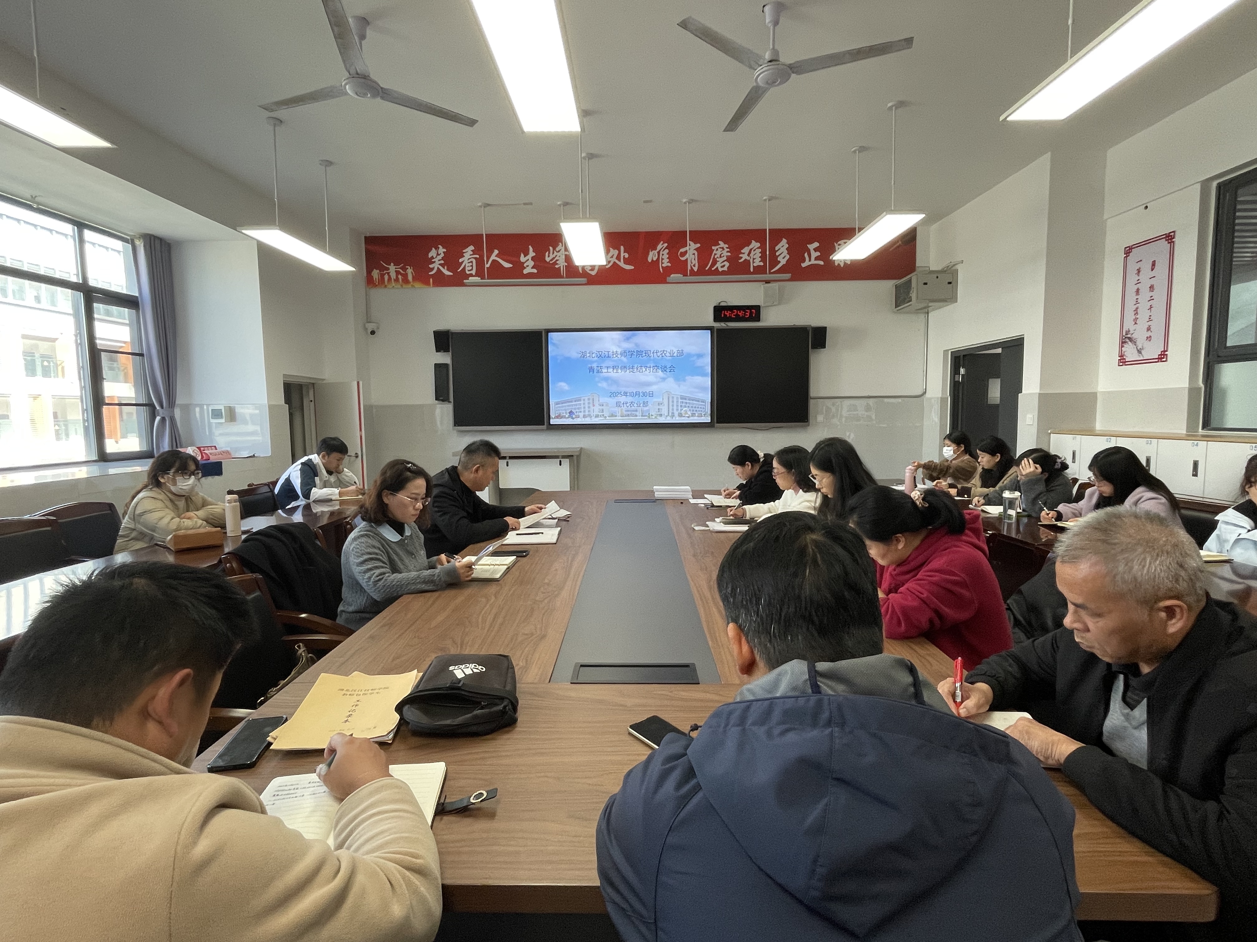 2025年10月30日下午,现代农业部在10号楼305会议室举行2025年秋季学期青蓝工程师徒结对座谈会,旨在充分发挥资深教师传帮带作用,促进青年教师专业成长。学部主任刘长城、支部书记冀慧玲以及全体结对帮扶教师、实习教师参加座谈。