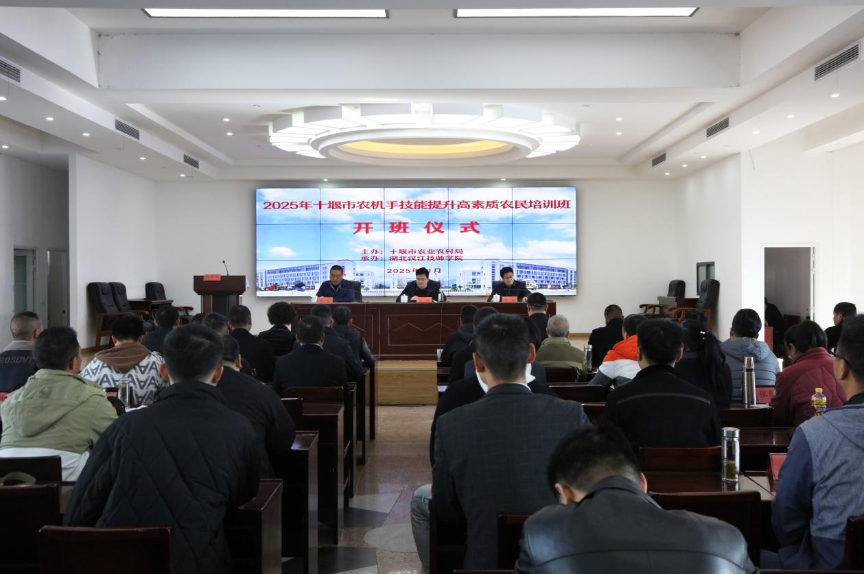为提升我市农机手技术技能和综合素质,提高农机化水平,11月11日上午,由市农业农村局主办、湖北汉江技师学院承办的“2025年十堰市农机手技能提升高素质农民培训班”在丹江口校区正式开班。学校党委委员、副校长柯权,市农机技术推广中心副主任朱彬出席开班仪式。来自全市各县(市、区)的50名专业农机手、农机大户和农机作业服务组织带头人参加本次培训。开班仪式由培训中心主任周荔主持。