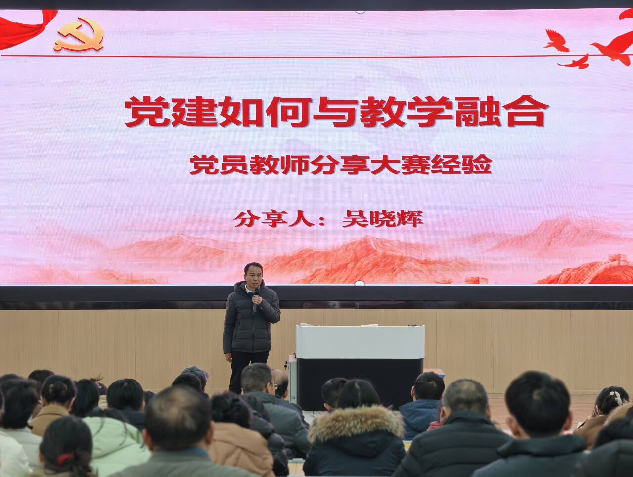 会议第三议程聚焦“党建与业务深度融合”。部门优秀党员教师吴晓辉结合此次技能大赛并荣获佳绩的实践经验,分享了如何将党建引领贯穿于备赛、参赛全过程。他谈到,党支部的战斗堡垒作用和党员的先锋模范作用,是凝聚团队、攻坚克难、取得突破的关键。他的分享生动具体,极具启发性。部门以此为契机,发出号召,鼓励更多教师,特别是党员教师,主动投身各级各类教学与技能竞赛,以赛促教、以赛促学、以赛促改,在实践中深化党建与教学科研的融合,提升育人本领。