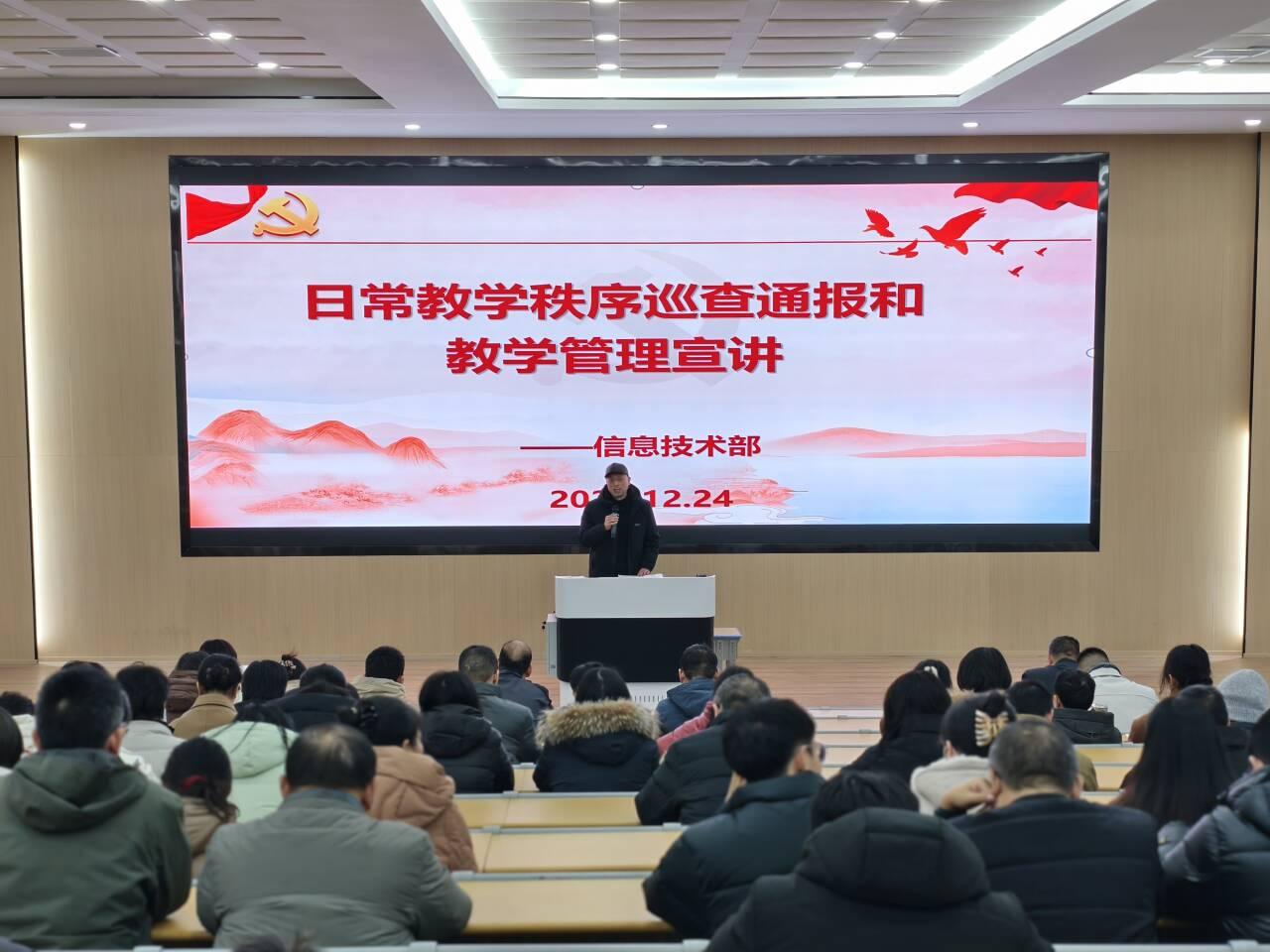 12月24日下午,信息技术部召开全体教师大会,专题学习党的二十届四中全会精神,并结合部门实际部署贯彻落实工作。会议由柯灏老师主持,一共三个议程,旨在统一思想、凝聚共识,将全会精神深度融入教育教学管理全过程,推动部门各项工作在新时期实现高质量发展。