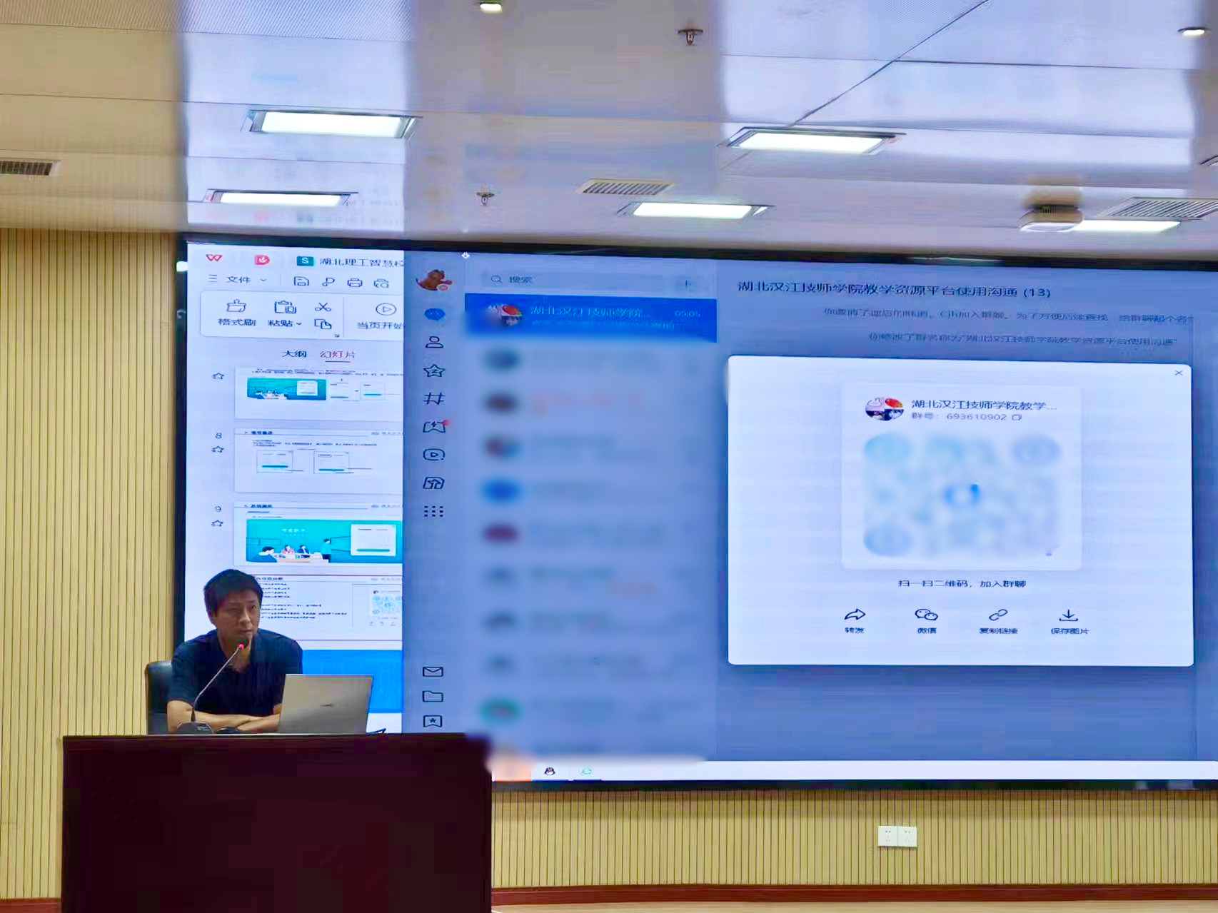 培训结束后,信息管理中心李昆主任动员各位老师们积极分享教学资源,在场培训的部分老师携带电脑并主动在资源平台测试上传教学资源,并建立了专门的教育教学资源平台使用沟通群,以确保及时解决老师们使用云平台和共享云资源时的问题。