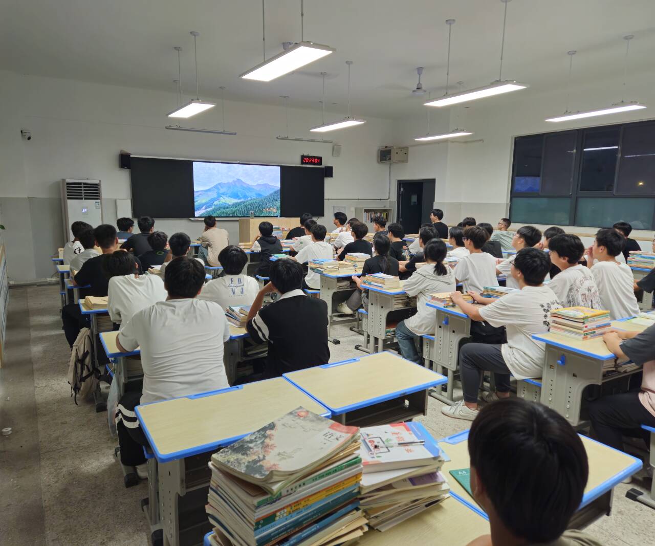 22513班唐运福老师在视频收看前,精心布置了教室环境,悬挂了以 “可爱的中国” 为主题的横幅和一些展现祖国壮丽山河、科技成就的图片,让学生一走进教室就能感受到强烈的爱国氛围和对节目的期待;调整桌椅摆放,形成一个便于观看和交流的布局,确保每个学生都能有良好的视角观看视频。组织预习讨论,提前将节目中可能涉及到的一些知识领域,如文字学、历史学、航天科技等相关的基础概念和背景资料分发给学生,让他们在收看视频前进行初步的了解和思考。组织小组讨论,让学生们分享自己对这些领域的已有认知和疑问,激发他们的好奇心和求知欲。