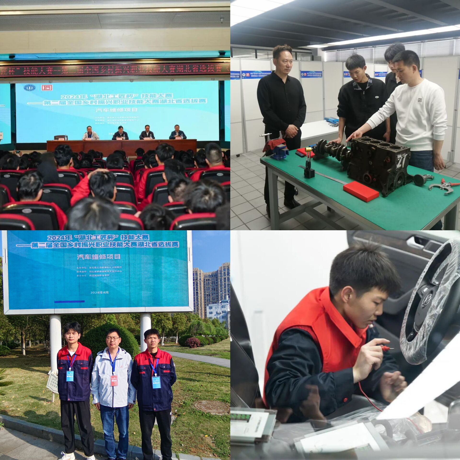 本次选拔赛为省级一类大赛,由省人力资源和社会保障厅主办,旨在选拔出最优秀的选手代表我省参赛,充分展现湖北乡村振兴技能人才的培养成果。选拔赛共设砌筑、汽车维修等 11 个竞赛项目,每个项目均设置职工组和学生组。具备农业家庭户籍且符合年龄要求的人员均可报名参赛。本次汽车维修项目比赛中,学生组共有39名参加,其中高职选手15名,中职选手24名,经过激烈的角逐,贾光林获得优胜奖,李洋洋凭借出色的赛场表现以第一名的好成绩脱颖而出,喜获金奖,获得国赛的入场券。