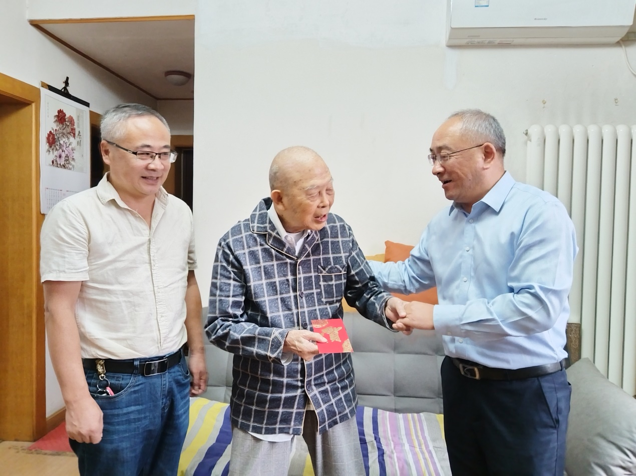 在庆祝中华人民共和国成立75周年之际,为体现对离休干部的关怀,9月30日,十堰市离休干部休养所副所长李卫东,校党委副书记、纪委书记刘铭一行,带着市委市政府的关怀和校党委的深情厚谊,来到离休干部周清家中进行看望慰问。