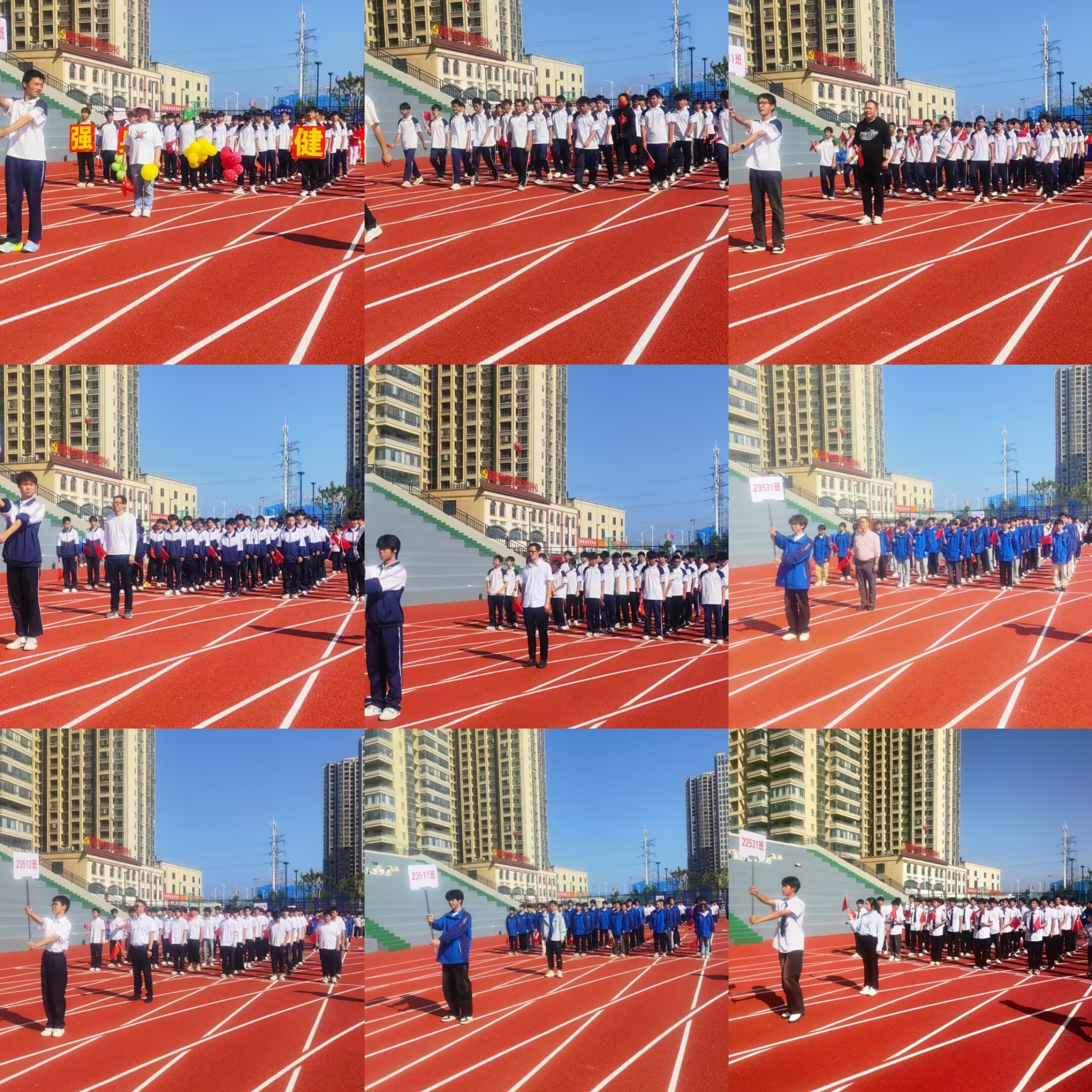 紧随其后的是 12 个班的学生方阵,他们犹如一支支蓄势待发的精锐之师。每个方阵都各具特色,有的班级身着统一的运动装,步伐整齐,口号嘹亮,展现出青春的活力与激情;有的班级则以创意的造型和表演,展示着电气工程的独特魅力。他们或手持电气工具模型,象征着对专业技能的执着追求;或通过精彩的队形和动作变换,表达着对运动会的热情和对班级荣誉的捍卫。