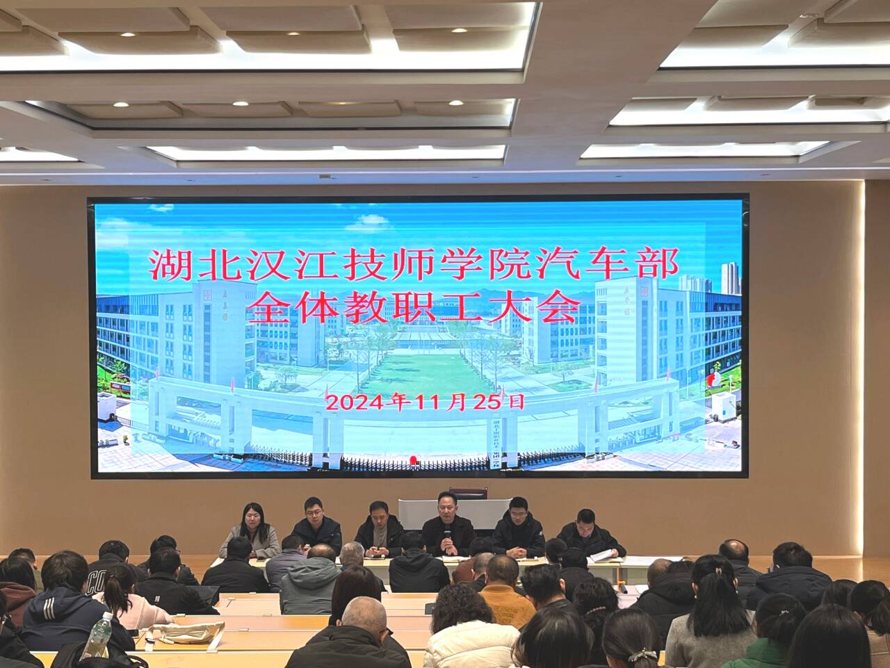 2024 年 11 月 25 日下午,汽车部召开全体教职工大会。本次大会旨在部署汽车部近期重点工作和强调安全事项,汽车部全体专兼职教师以及班主任老师参会,会议由李雷主任主持。