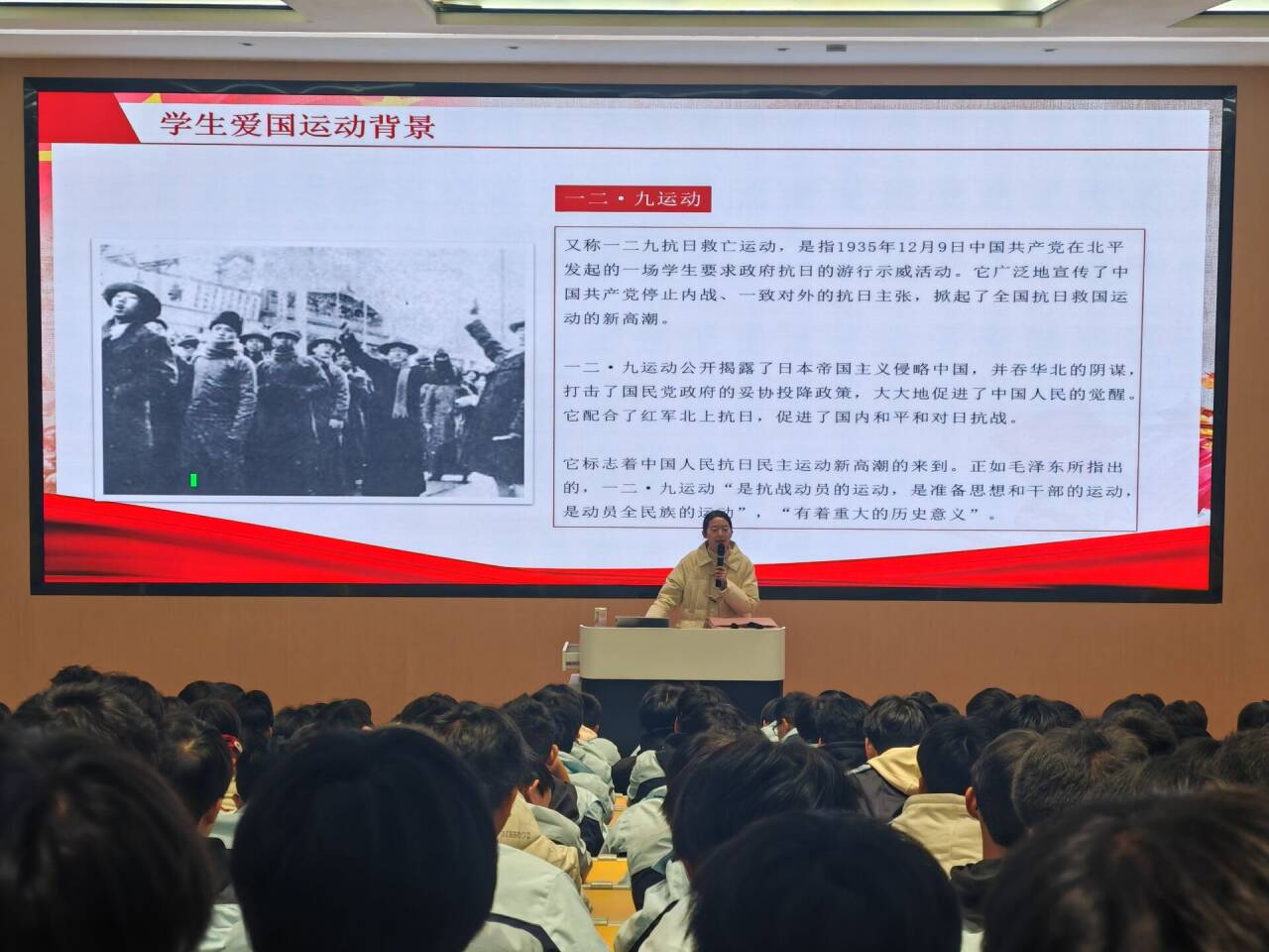 张晓锋老师以丰富的历史资料和生动的语言,将学生们带入了那段激情燃烧的岁月,详细阐述了一二·九运动的起因、经过及其深远的历史意义。她强调,这场运动不仅仅是一次反对日本侵略的爱国行动,更是中华民族在危难时刻所展现出的一种不屈不挠、勇于抗争的伟大精神。讲座过程中,张老师还积极引导学生们思考如何在新时代背景下,将一二·九精神内化于心、外化于行,为实现中华民族复兴的中国梦贡献自己的力量。她鼓励同学们要铭记历史,珍惜当下,以更加饱满的热情和更加坚定的信念,投身到祖国的伟大事业中去。