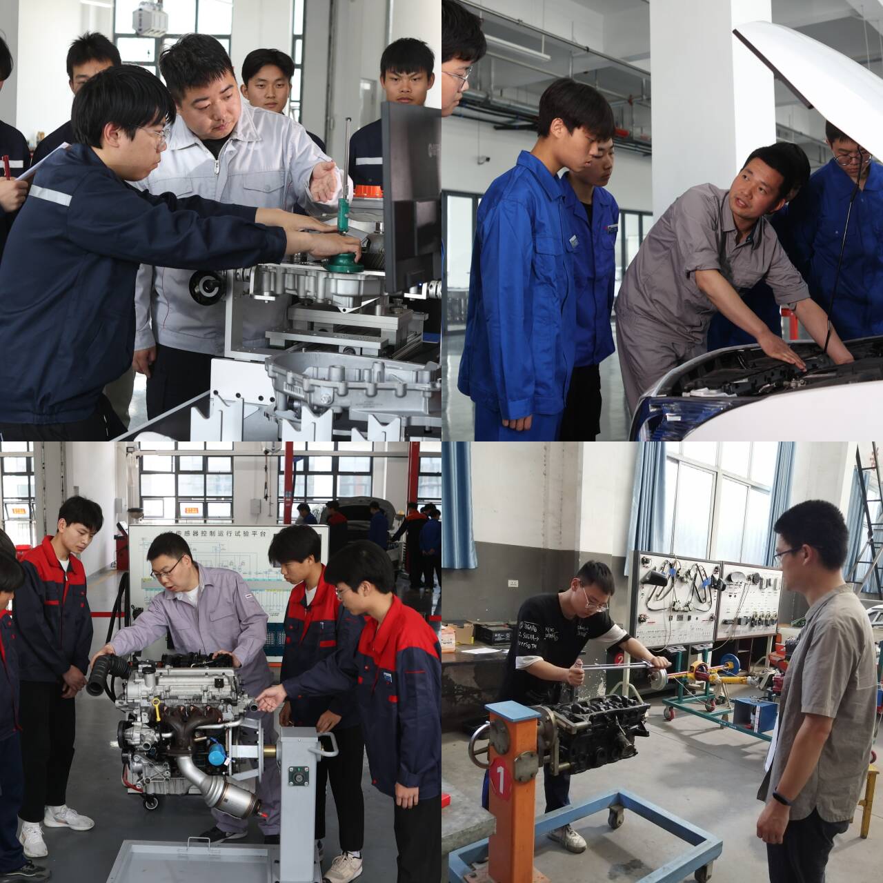 汽车部拥有一支由汽车行业资深专家、技术骨干和教育精英组成的教师团队。他们不仅具备扎实的理论知识,更拥有丰富的实践经验,能够将汽车领域的前沿技术与教学实际紧密结合。汽车部李雷主任亲历亲为,实干为先,关注学生训练过程,商讨制定学生训练计划,关心学生比赛心理状态。汽车部汪志金老师深耕教育事业30载,培养了无数优秀的汽车专业学生,这样的的优秀教师还有很多很多。汽车部团队教师在教学过程中,采用项目式教学法,以真实的汽车维修、改装等项目为载体,让学生在实践中掌握汽车发动机原理、汽车电路维修、汽车车身修复等核心技能。通过这种方式,学生们不仅学会了如何解决实际问题,更培养了创新思维和工匠精神。