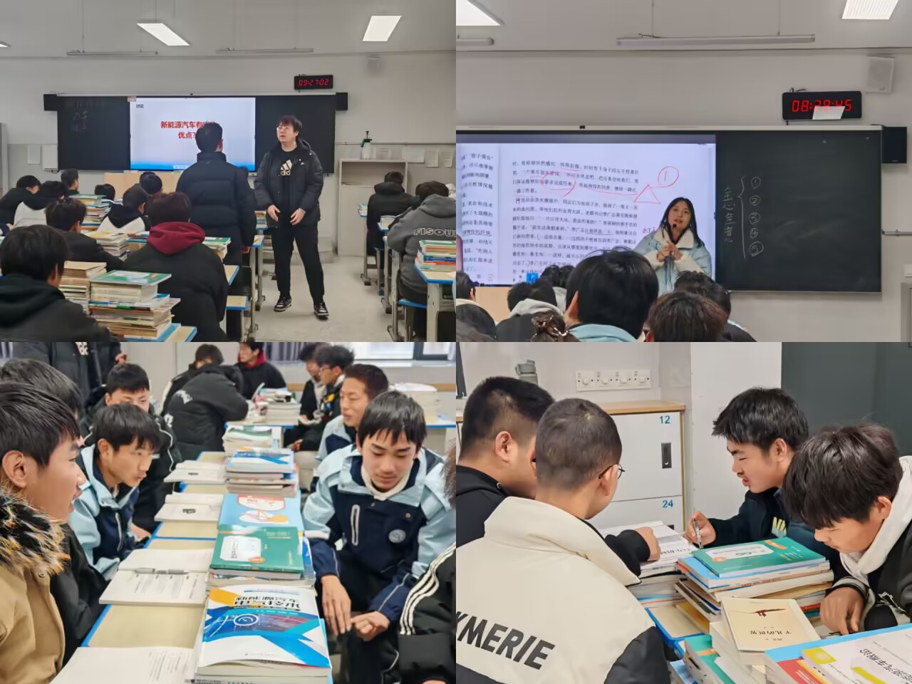 当日上午,李雷主任带领老师们走进不同教室,对正在进行的课程展开观察。在语文课堂上,授课老师王琳洁通过细致耐心的讲解、活跃的课堂活动,让学生深入体会焦裕禄全新全新为人民服务的精神。在新能源汽车电机课堂上,授课教师于秋义通过视频与小组讨论相结合的方式,让学生了解新能源汽车与传统汽车的区别以及新能源汽车的优点。