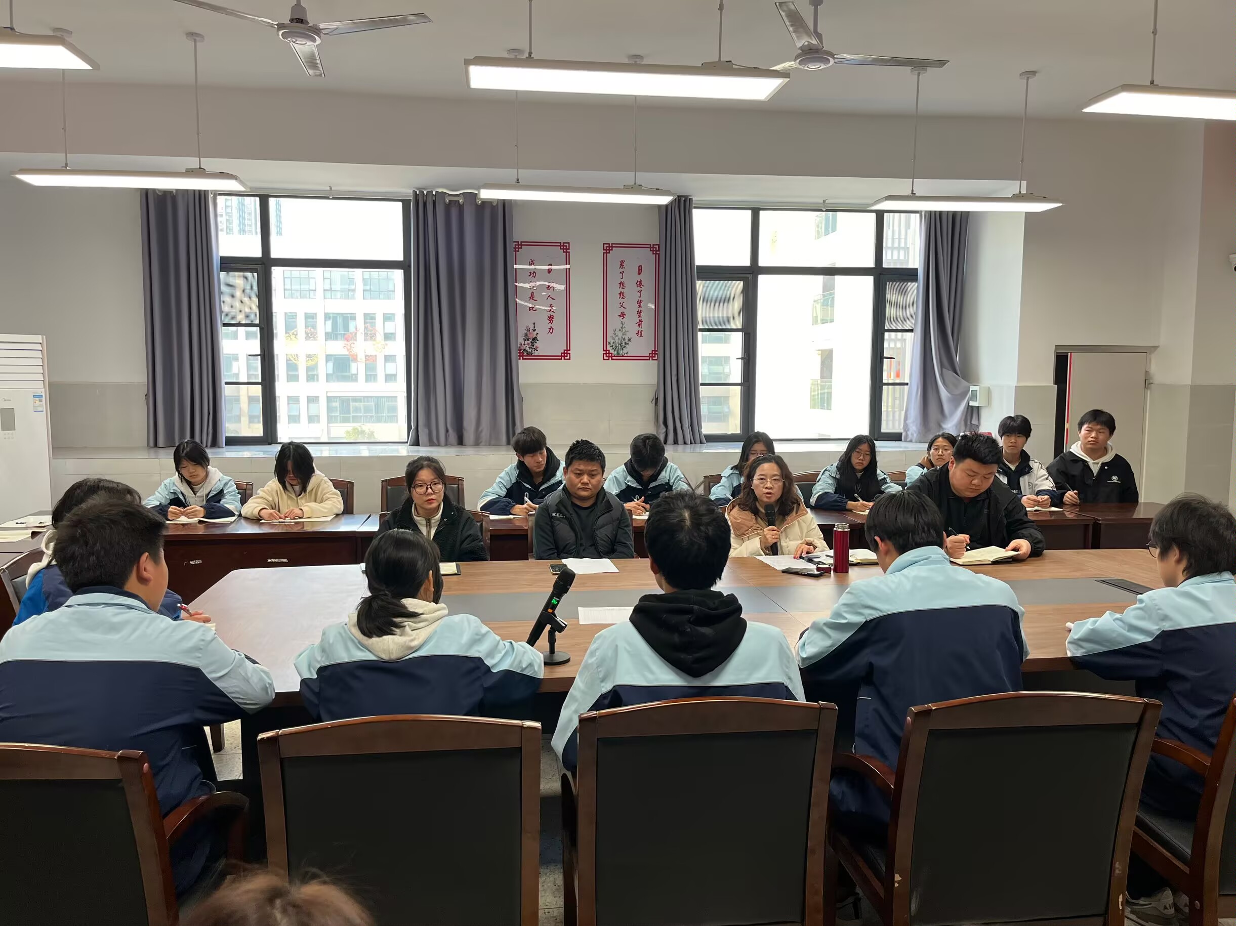 座谈会上,学生会三位成员代表依次汇报了近期工作情况,分享了工作中的经验与遇到的挑战,从日常卫生检查到课间巡查,从班级文化建设到志愿服务推进,各学生会部门的工作成果丰富多样,充分展现了学生会在校园生活中的积极作用。代表发言结束后,参会师生就如何增强学生会的凝聚力、提高活动的参与度和影响力、加强与各部门及学生社团的合作等问题展开了热烈讨论。大家各抒己见,提出了许多富有建设性的意见和建议。
