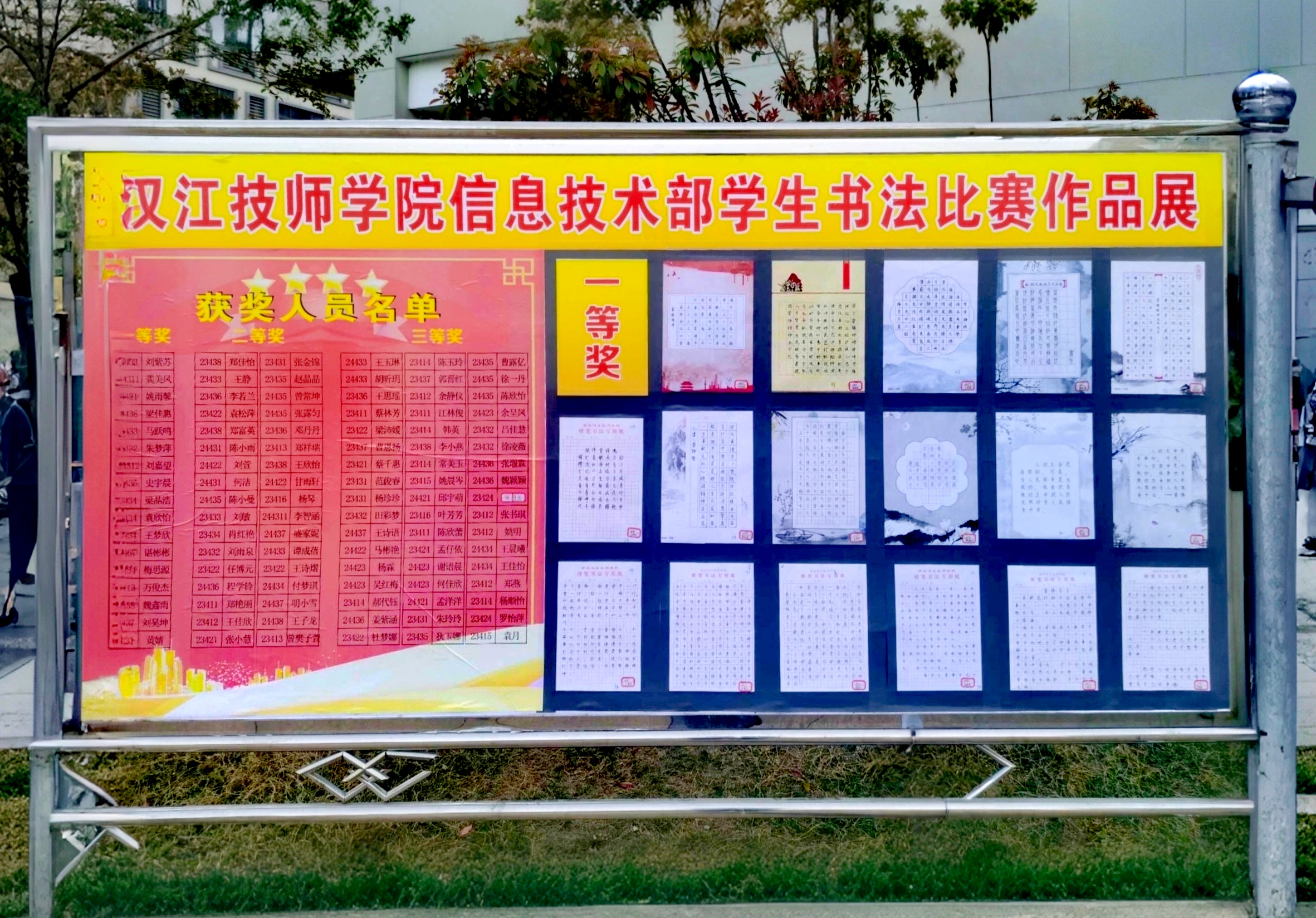 2025年3月下旬,为传承雷锋精神,弘扬中华优秀传统文化,湖北汉江技师学院信息技术部举办了以“弘扬雷锋精神”为主题的学生硬笔书法比赛作品展。本次活动以传统书法艺术为载体,生动诠释新时代雷锋精神内涵。引导学生学习雷锋同志无私奉献、爱岗敬业的崇高精神,同时提升学生的文化素养和书写能力。