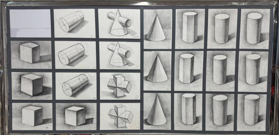 展览汇集了信息技术部学子们在过去一学年中的优秀美术作品。这些作品不仅体现了扎实的美术功底,更深度融合了同学们的创新意识。这里可以欣赏到几何素描、静物素描、平面色彩构成、产品设计等多种形式作品。亮点纷呈,充分展现了信息技术部在艺术设计领域的探索与成效。
