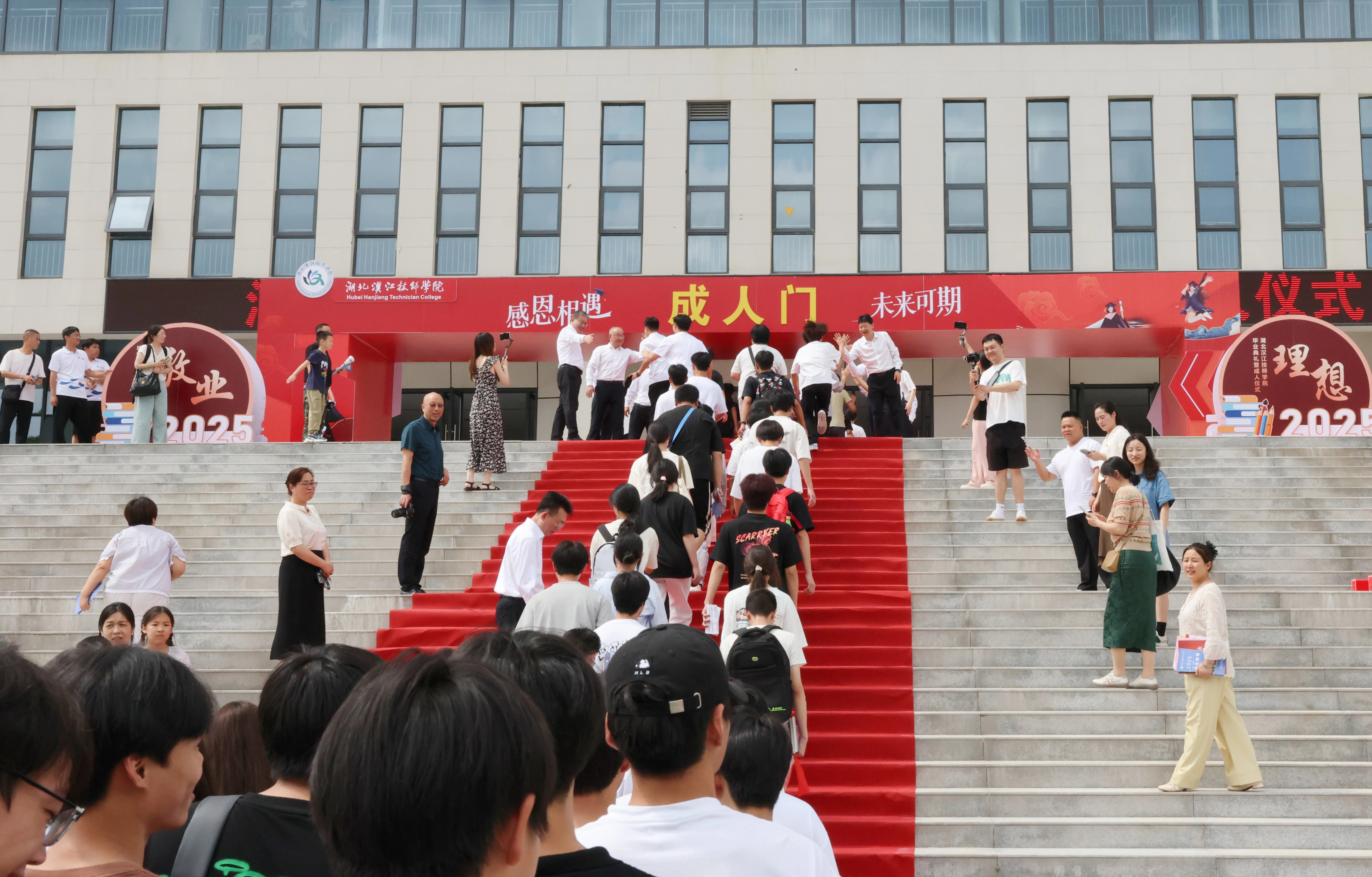 毕业典礼结束后,毕业生们伴着歌声,依次穿过“成人门”。从此,他们将告别懵懂,迎来沉稳;告别迷茫,迎来坚定,翻开新的篇章。