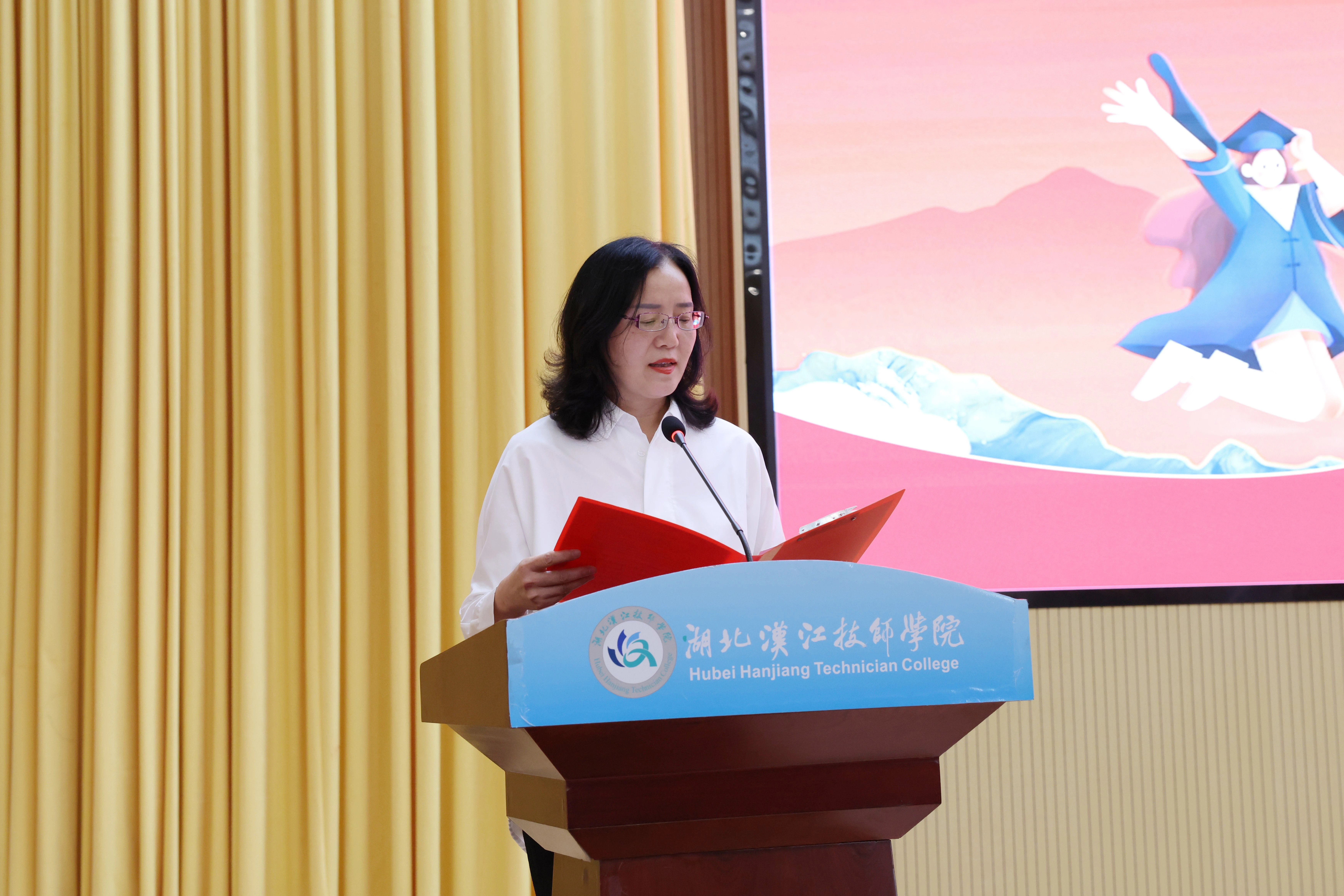 党委委员、副校长何平致贺词,她祝贺毕业生们顺利毕业,正式迈入成人行列,寄语毕业生们奔赴新的征程,在广阔天地中大放异彩。