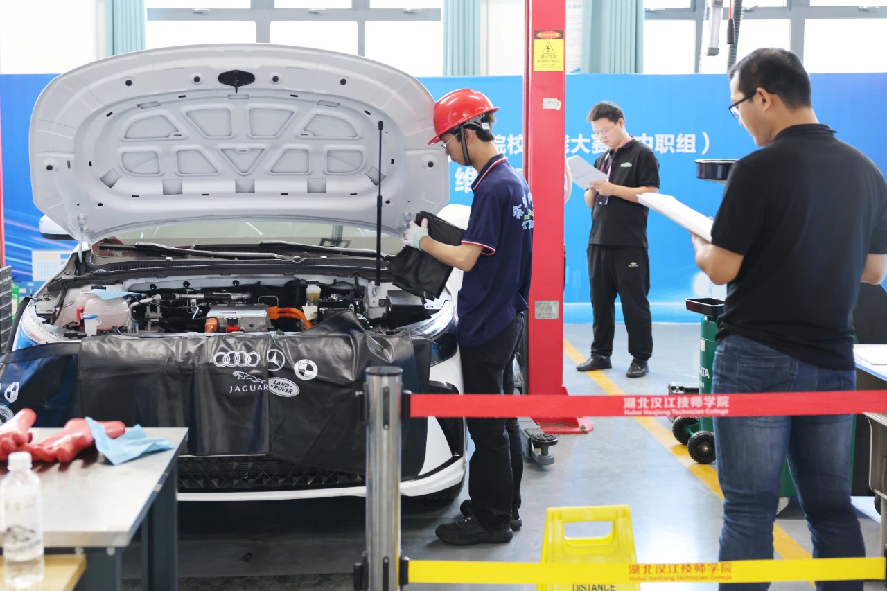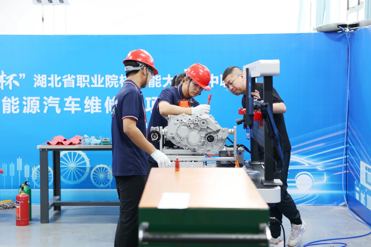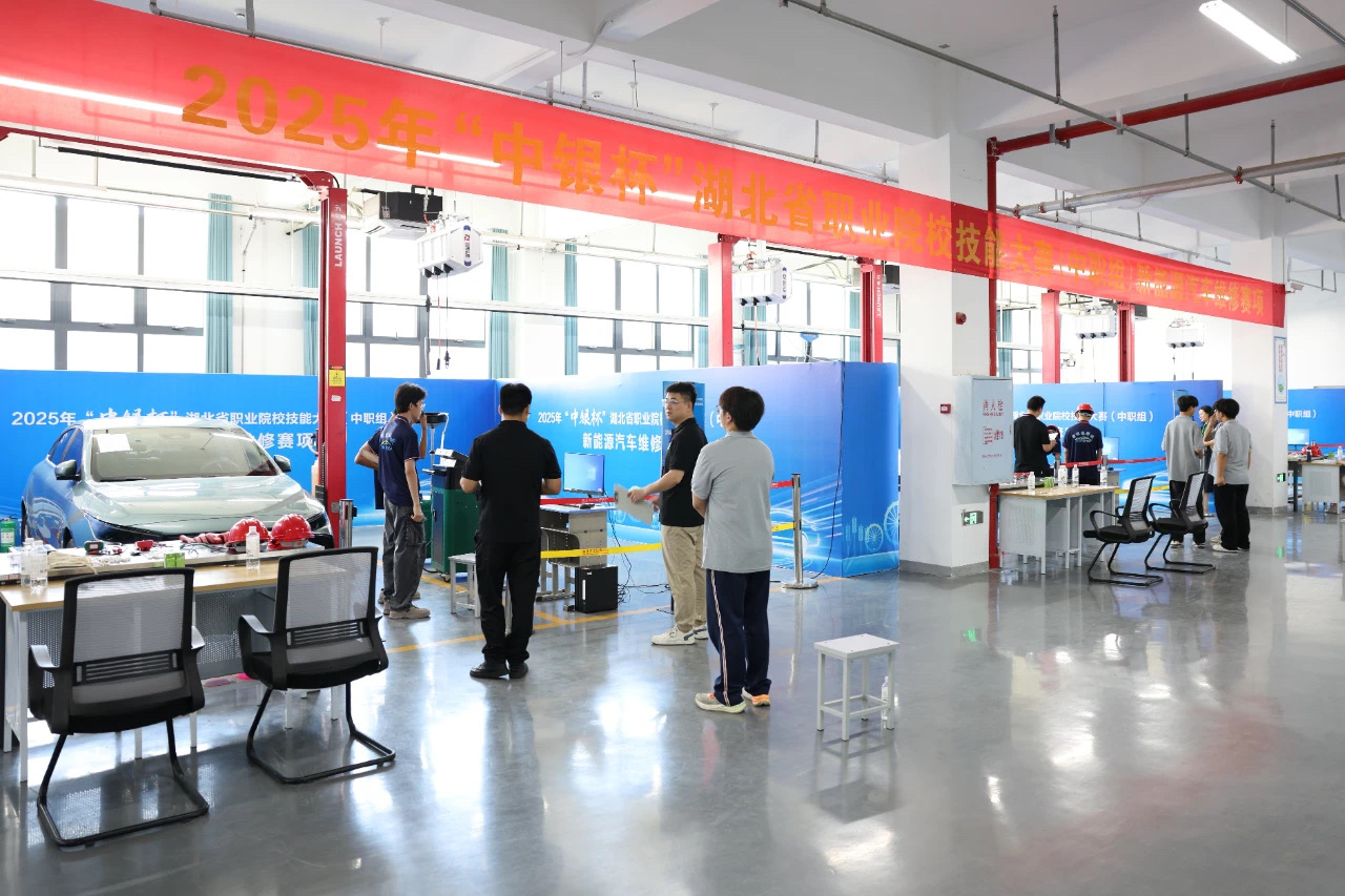7月3日上午,2025年 “中银杯” 湖北省职业院校技能大赛中职组新能源汽车维修赛项开幕式在我校举行。省教育厅大赛巡视员黄国伟,市教育局党组成员、副局长刘爽,党委副书记、校长李秀峰出席开幕式,党委副书记、纪委书记刘铭主持开幕式。