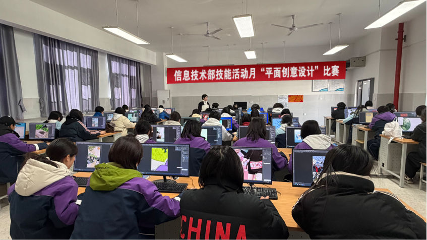 为激发学生创新思维,提升专业技能,信息技术部于2026年1月15日成功举办了一场主题鲜明的“平面创意设计”大赛。大赛宗旨是“以赛促技、以美育人”。旨在鼓励学生利用所学技术创意设计,达到创意性、美观性、技术性与正确价值观的完美结合。
